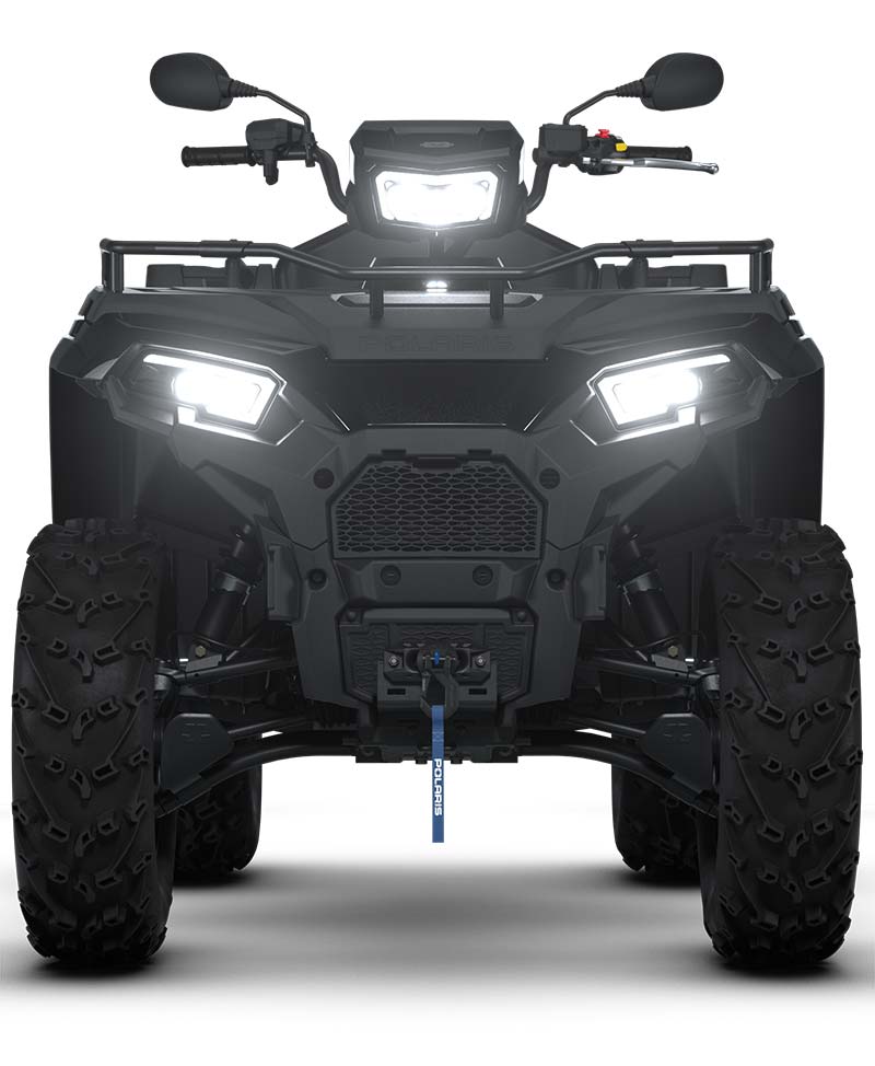 - 3 modos de condução: Standard / work / performance. Tomada de 12 V, porta de carregamento lento no painel, aquecedores de mãos e polegares incluídos, aquecedor de motor DEFA, sistema de segurança ativado por PIN (P.A.S.S.). Guincho de 3500 lb com corda sintética e NOVO Auto Stop. Extensor de rack dianteiro, caixa de carga, proteções dos braços em A dianteiros e traseiros, plásticos pintados.
