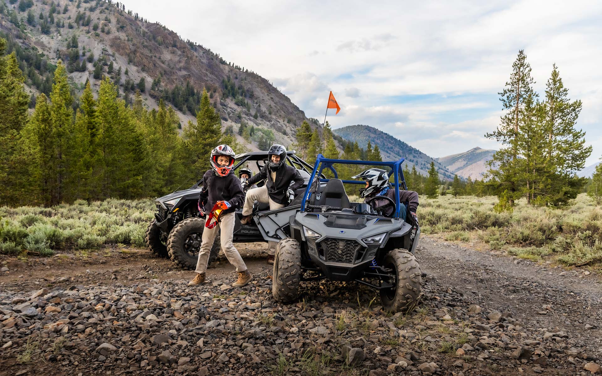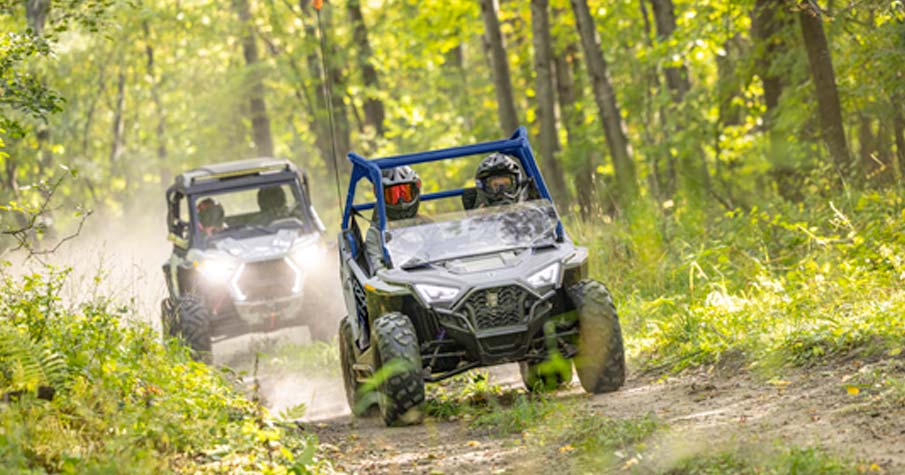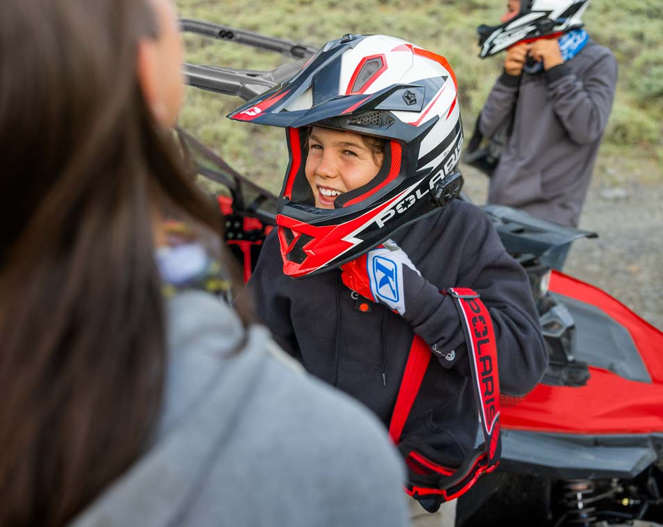 Desfrute a tranquilidade de saber que a série RZR vem equipada com funcionalidades de segurança líderes na indústria, incluindo arranque através de código pin, limitador de velocidade ajustável, geofencing, redes de segurança, kit de segurança exclusivo na indústria e tecnologia de deteção de capacete.