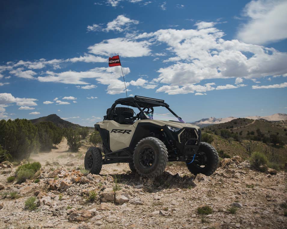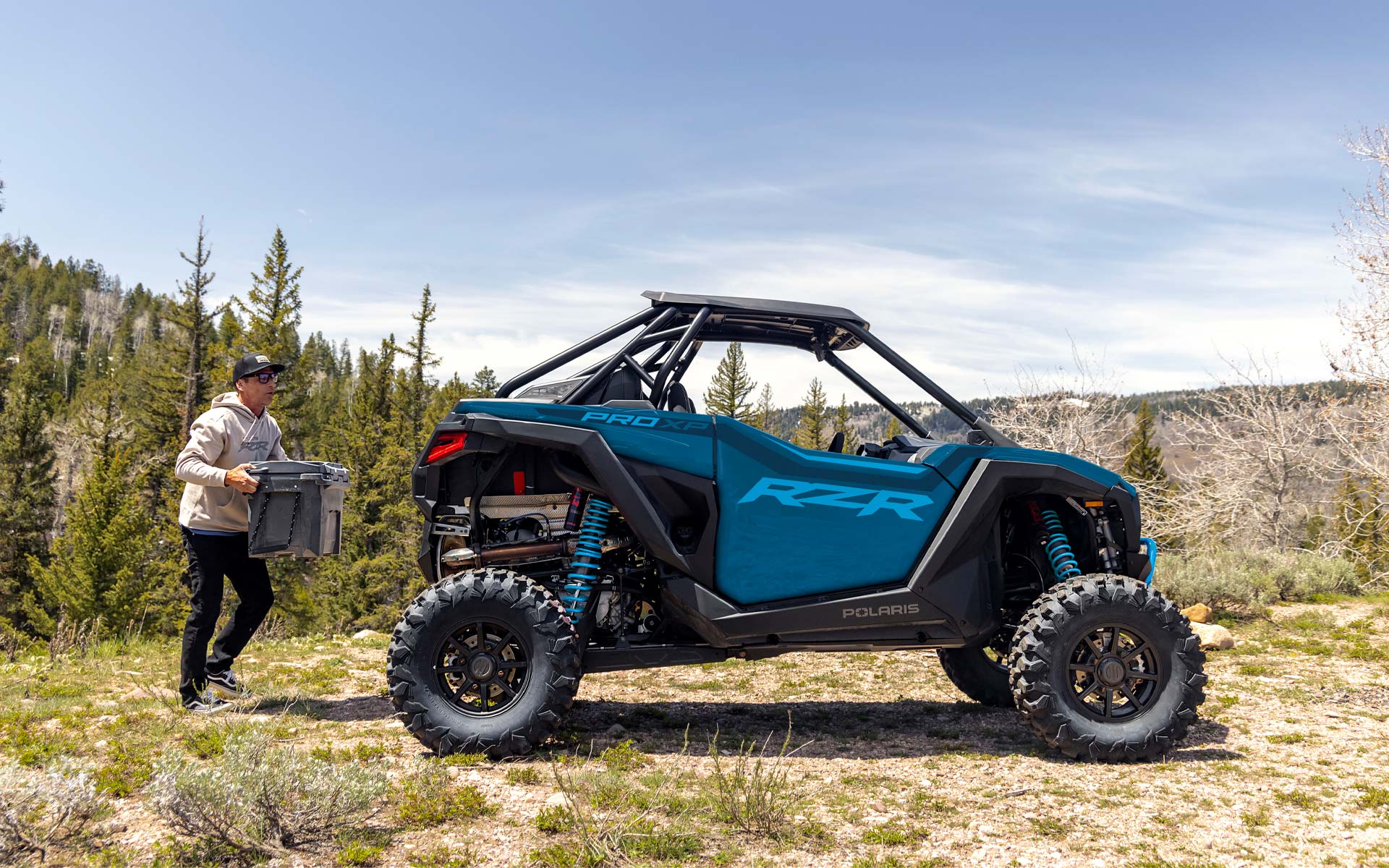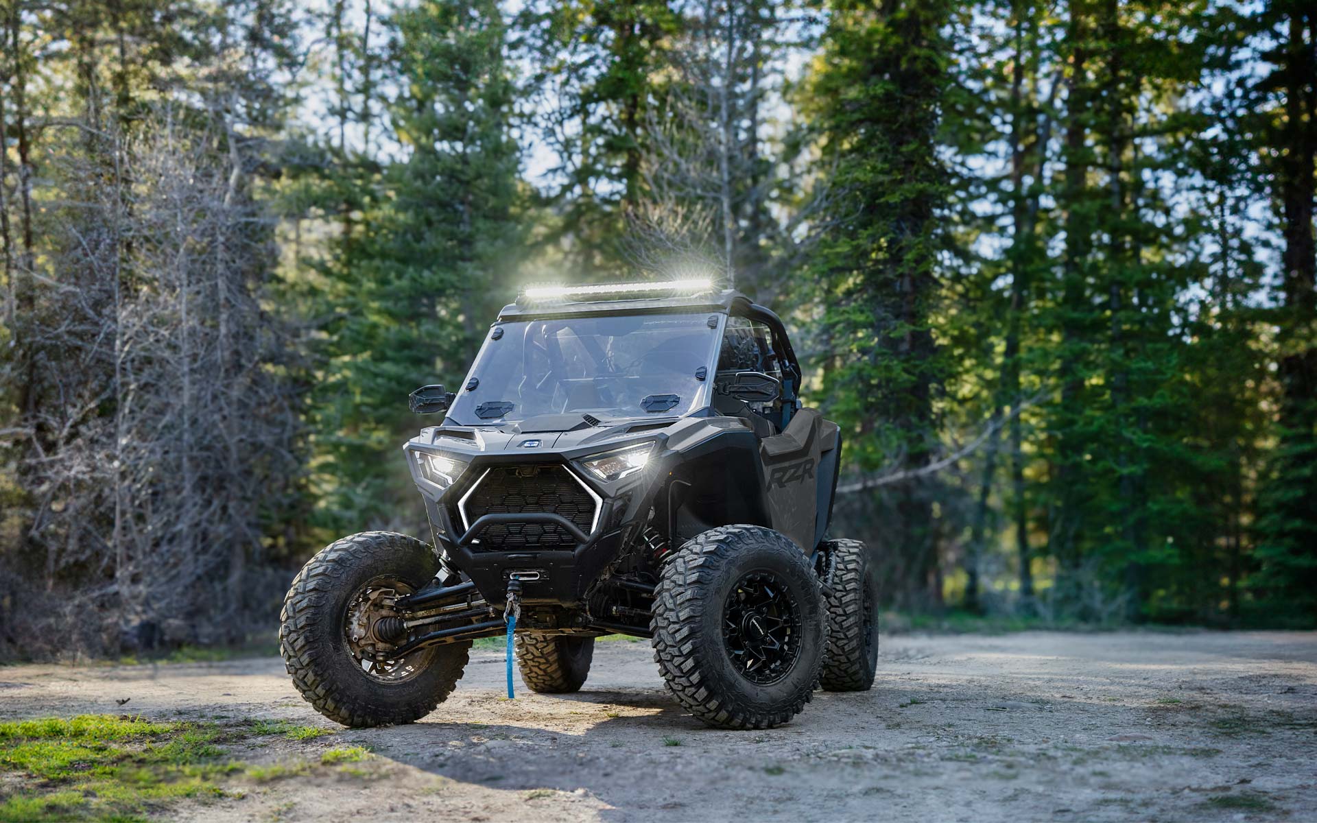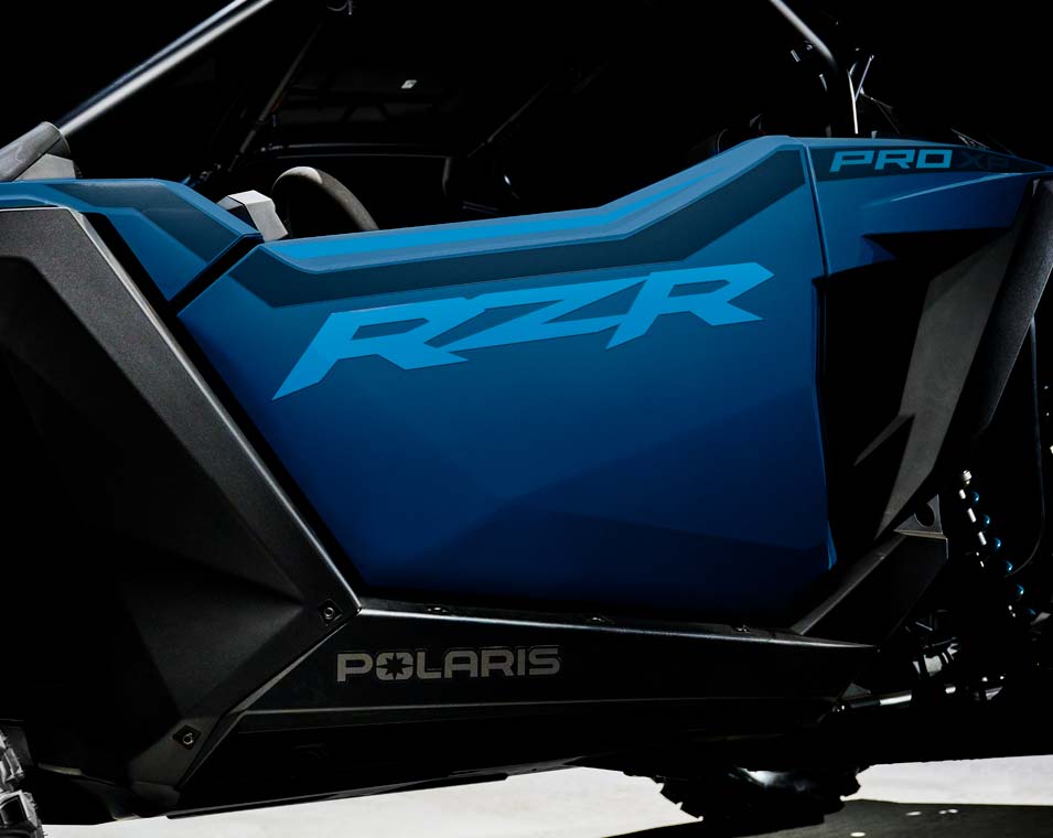 Marca presença com o design marcante do RZR Pro XP — que alia estilo e desempenho na condução todo-o-terreno.