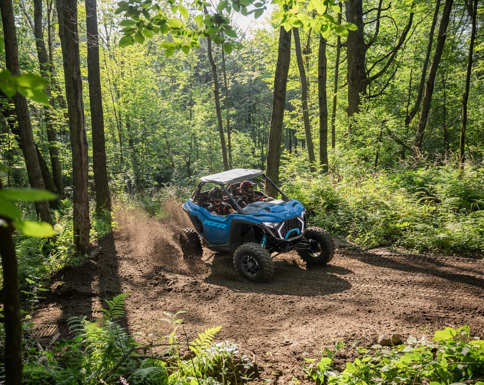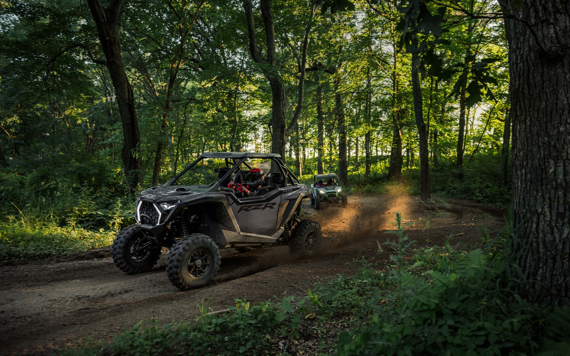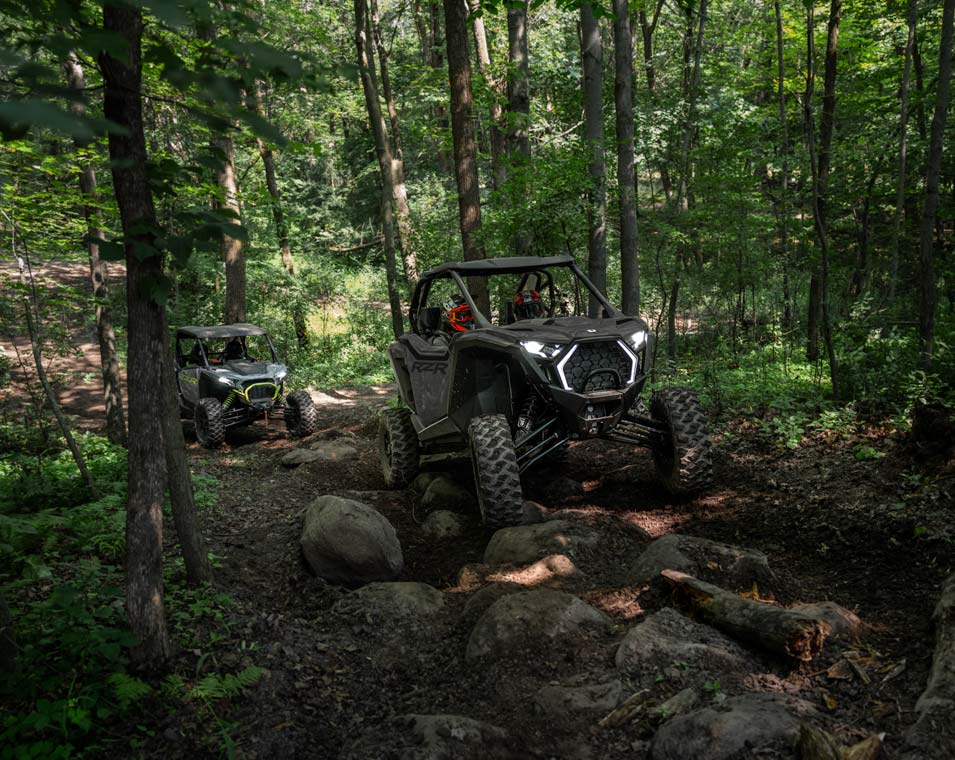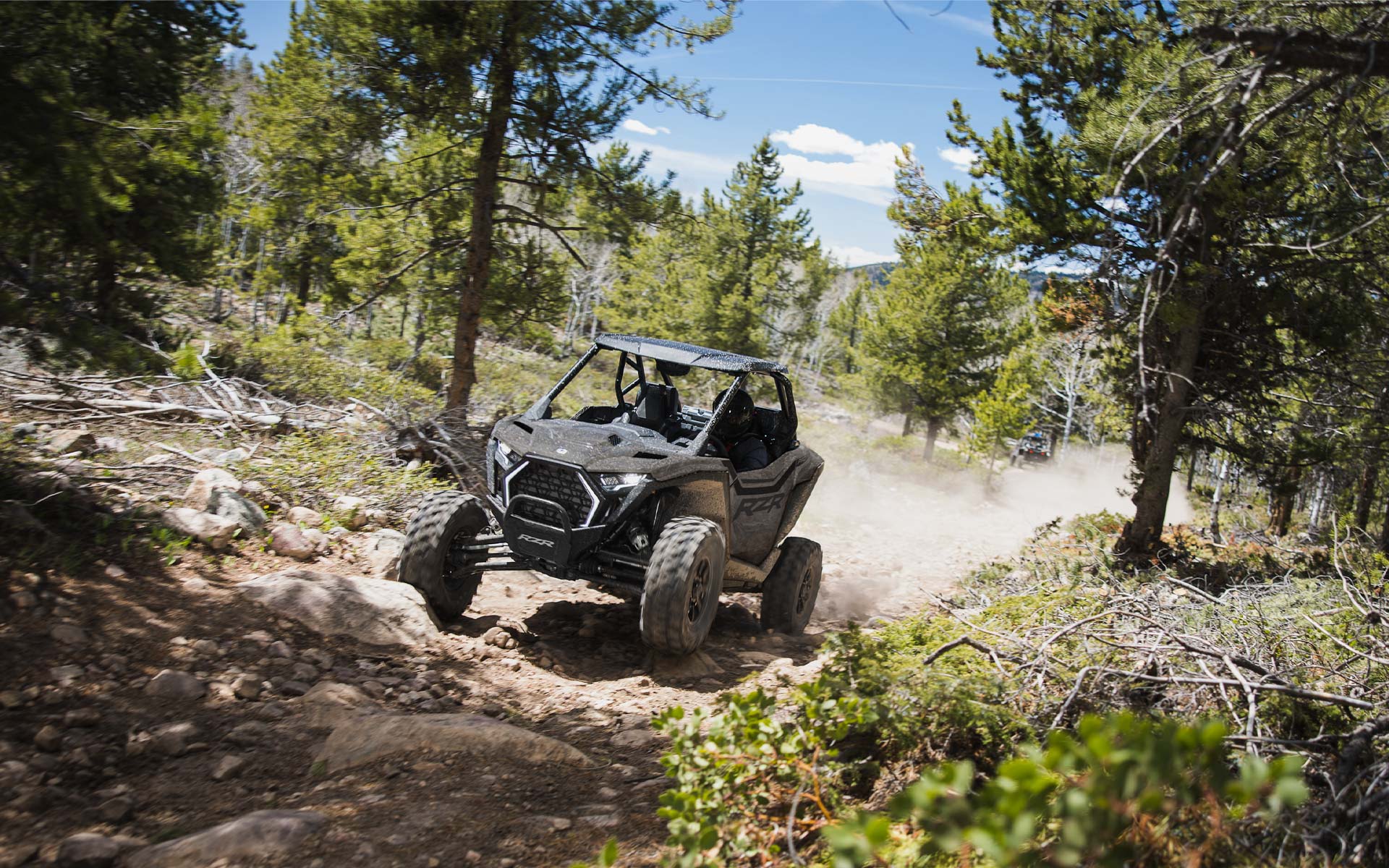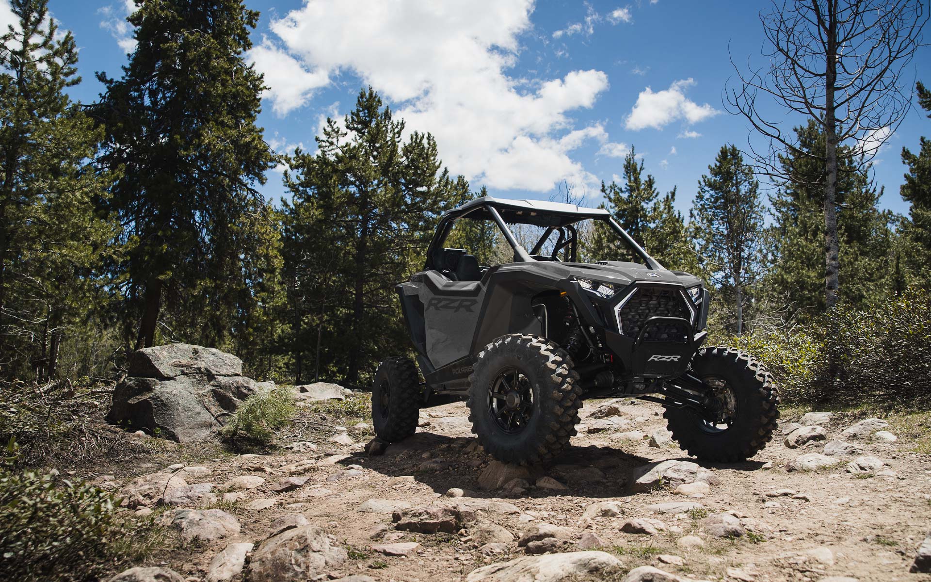Marca presença com o design marcante do RZR Pro XP — que alia estilo e desempenho na condução todo-o-terreno.