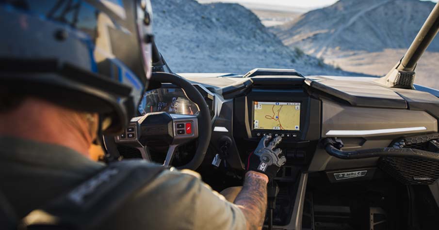 - RIDE COMMAND com GPS todo-o-terreno integrado no ecrã de 7", com câmara traseira